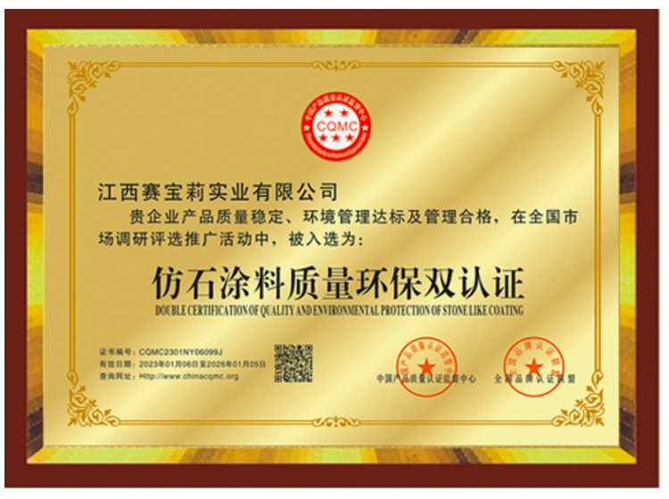 江西賽寶莉?qū)崢I(yè)有限公司總部坐落于英雄城南昌,是一家集建筑涂料研發(fā)、生產(chǎn)、銷售、服務(wù)于一體的大型綜合性企業(yè)。專注涂料行業(yè)20余年,是專業(yè)的仿石涂料和藝術(shù)涂料制造商和供應商,擁有獨立研發(fā)實驗室,是CCTV央視廣告播出品牌、“國家高新技術(shù)企業(yè)”“中國建筑材料流通協(xié)會理事單位”。選擇賽寶莉,讓家更美麗。